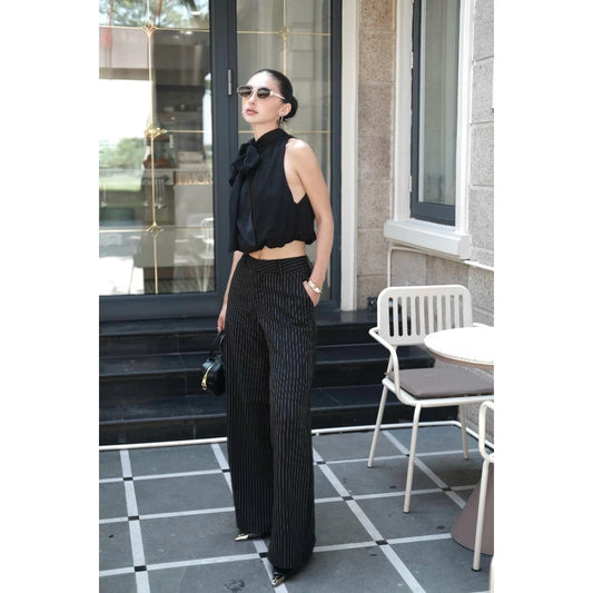 SAVE 25%RON - BBYBON Plaid Wide-Leg Pants